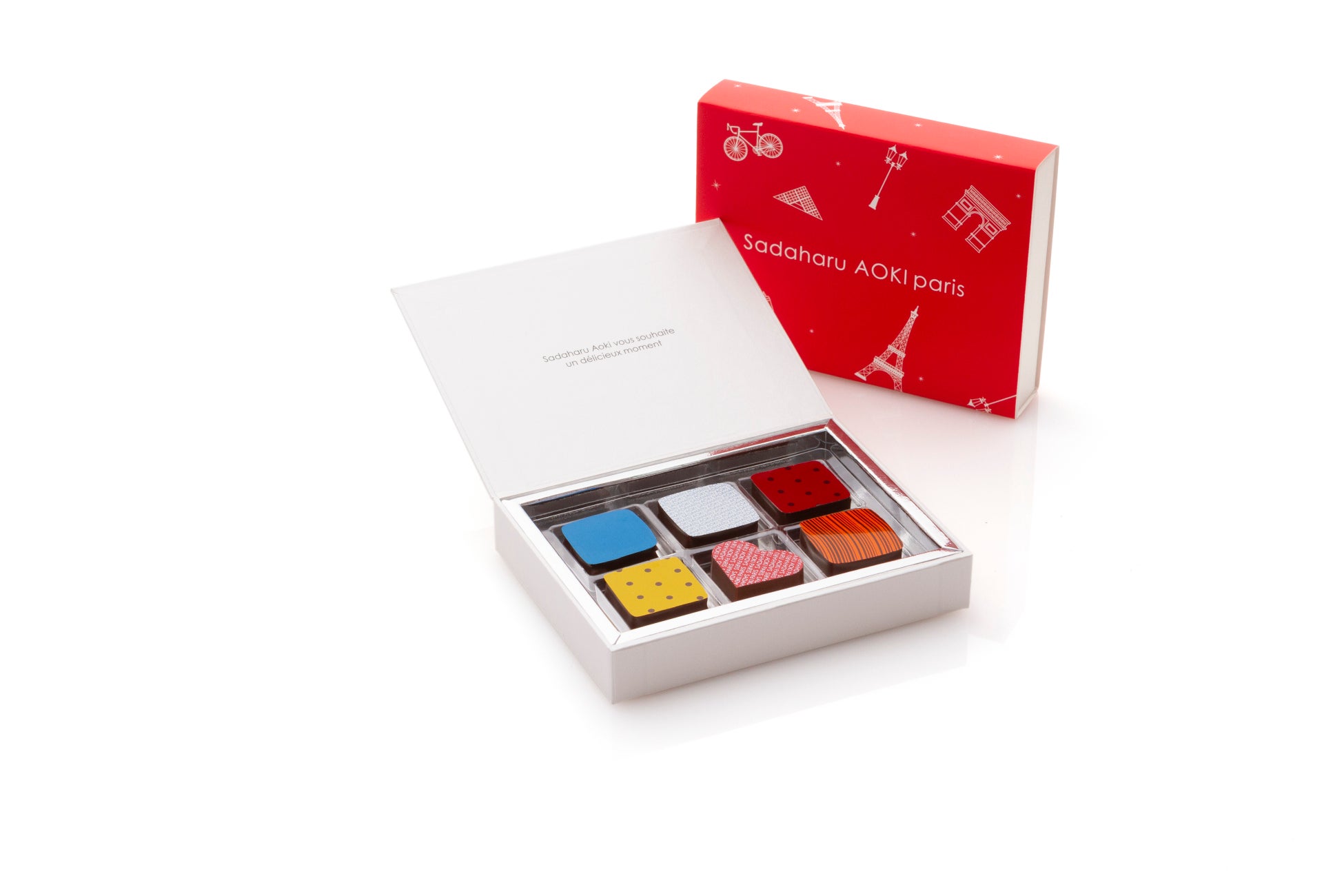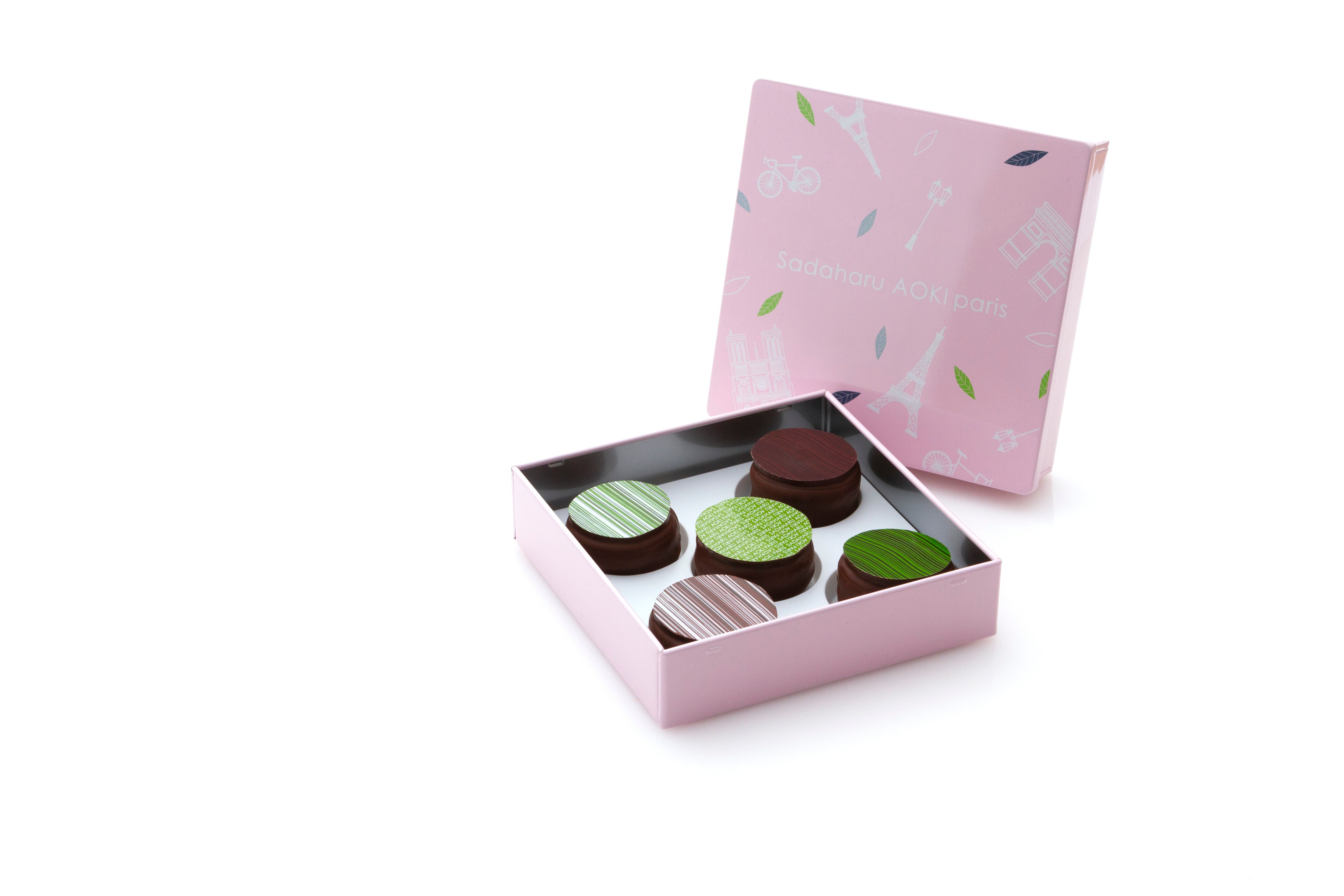 毎年「AOKI」の名を付けて発表している新作ショコラアソート。「AOKI 2023」は、新作の「ミルティーユ アールグレイ」「テ ジャスマン」「ミエル シトロン コンフィ」の3粒に、フランスで最も権威あるショコラ品評会にて最高位の受賞歴を持つ「パッション」と「プラリネ オレ」の2粒と人気フレーバーの「フィグ」を加えた計6粒を詰め合わせました。“フルーツ”と“お茶”をテーマに、ショコラと素材のマリアージュをご堪能いただけるスペシャルなアソート。ショコラのくちどけと共に広がるフルーツの酸味やお茶の芳醇な香りと味わいが優雅なひと時をもたらします。