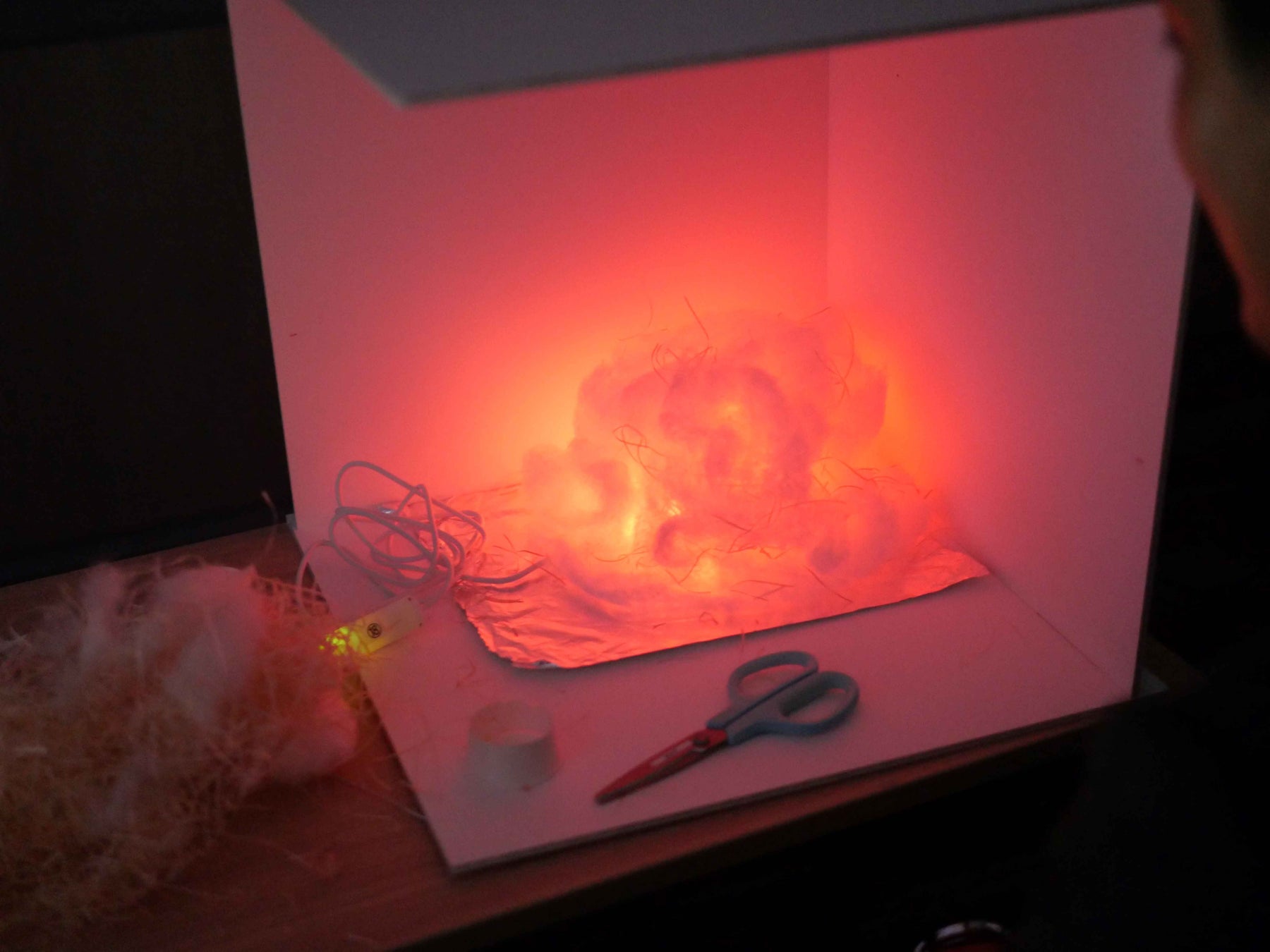 ■特長:スクラッチをベースにしたプログラミングとIoT照明を使って、光の色を変えたり、材料を使い反射させたりすることで、世界に一つだけのアート作品を創ります。光の表現とお子さま自身の創作イメージの結びつけを行うために講師との対話を行ったあとに、例えば「生命感」のような抽象度の高いテーマに基づいて照明のアートをつくり出していきます。