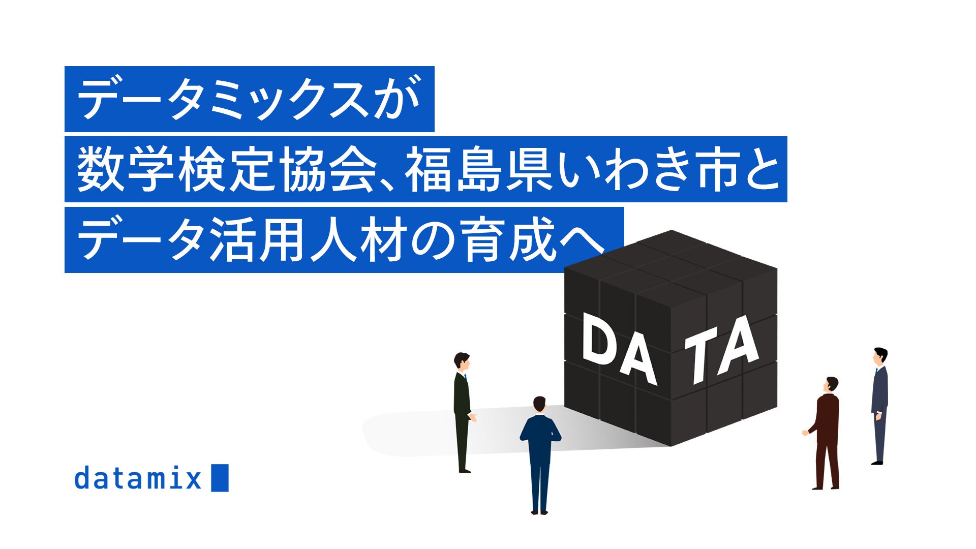 データサイエンス領域でのスクール事業やデータサイエンスビジネス事業の開発を行う株式会社データミックス(本社:東京都千代田区、代表取締役:堅田 洋資、以下「データミックス」)は、2023年3月15日に、実⽤数学技能検定「数検」を実施・運営している公益財団法⼈⽇本数学検定協会(所在地:東京都台東区、理事⻑:髙⽥ 忍、以下「日本数学検定協会」)と、福島県いわき市(市⻑:内⽥ 広之、以下「いわき市」)と、データを活⽤して「稼ぐ⼒」などの新しい価値を創出できる⼈材「次世代型産業創出⼈財」の育成を図るための連携協定を締結したことをお知らせします。