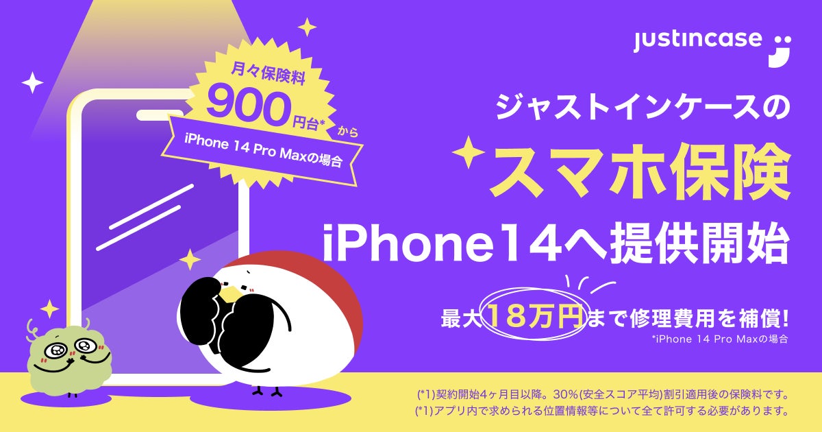 保険スタートアップの株式会社justInCase(以下、「当社」)は、 日本におけるiPhone 14シリーズの発売日である2022年9月16日より、スマートフォンの破損や盗難・紛失を補償する「スマホ保険」(正式名称: モノ修理費用保険、https://justincase.jp/smartphone)の提供を開始いたします。