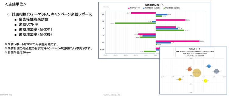 日本国内の実店舗における来訪者計測を行い、位置情報を活用した来店計測により、広告の費用対効果を測定するだけではなく、特定エリアや店舗への来訪者の属性や行動を可視化し、戦略策定を支援します。