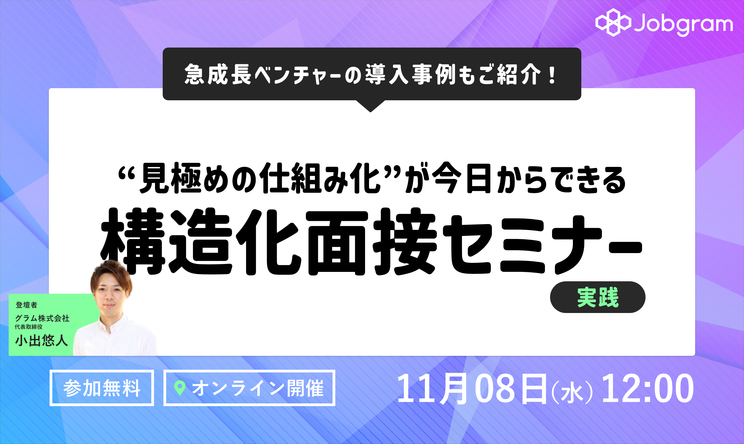 参加方法:フォームより事前申込( https://job-gram.jp/seminar/structuredinterview-20231108 )
