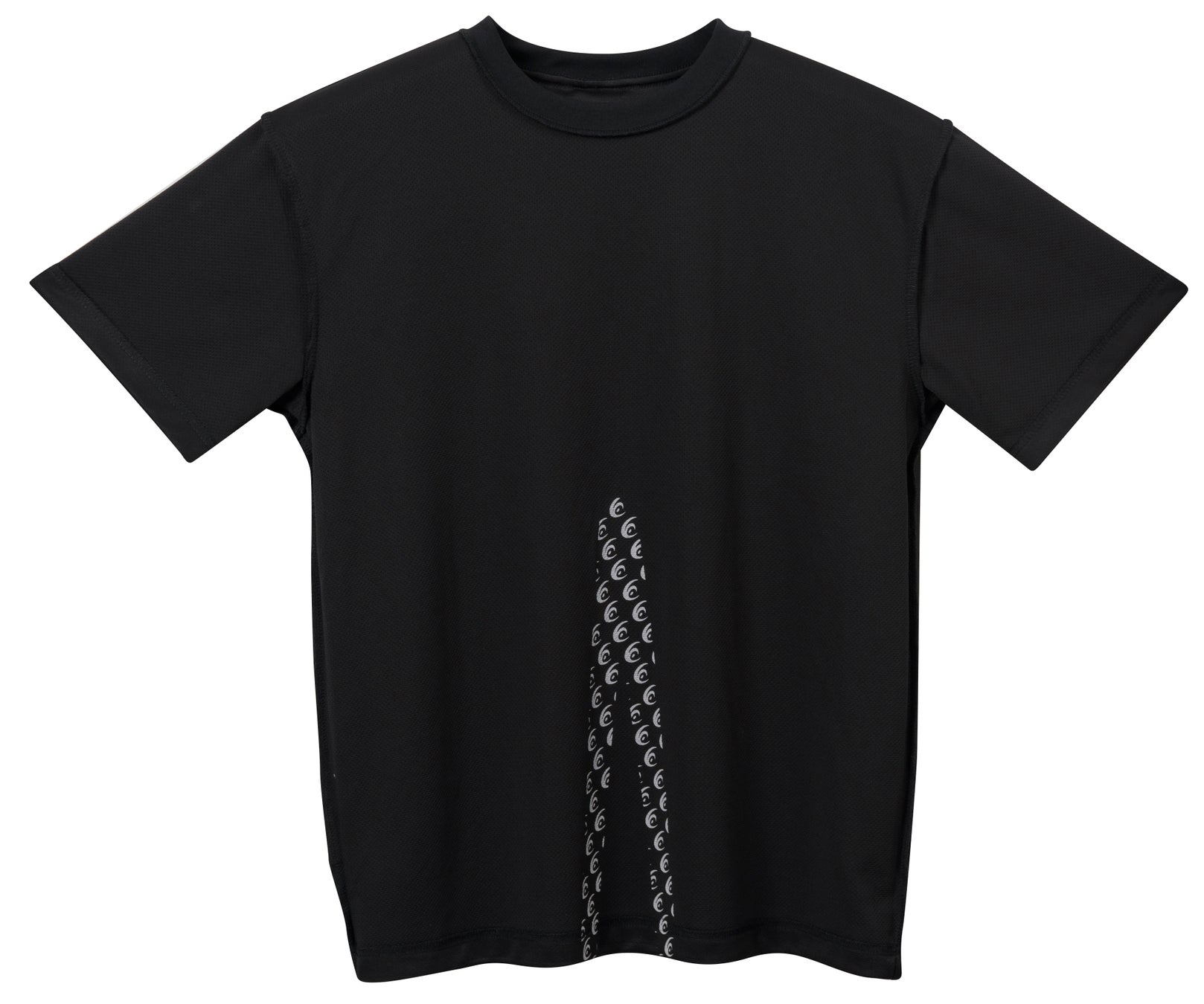 特殊加工を施した鉱石を練り込んだインクがシャツの前面と背面にプリント加工され、そこから輻射される遠赤外線により、着用時に血行が促進される機能性ウェアです。