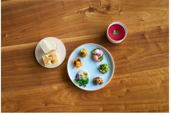 キッチンが共同で考案した、和食や発酵文化を取り入れた特別メニューも用意します。“一つの料理を空間にいる人たちとシェアする体験”をテーマに、ビュッフェスタイルで展開される料理はSOEキッチン同様に、ヴィーガンまたはベジタリアンに対応しており、可能な限り有機の食材を使用した、身体にも地球にも優しいラインナップです。さらに食材は、SOEキッチンのフィロソフィーでもある地産地消にならい、全て国産のものを使用。できるだけ東京近郊のもので揃え、輸送時のCO2削減にも寄与しています。世界が抱える社会課題に食を通じて向き合おうとするSOEキッチンの取り組みは、エリアソン自身がアートで表現しようとする姿に通ずる部分があります。ぜひ「THE KITCHEN」で、アートと食が織りなすサスティナブルなメッセージに触れてみてください。