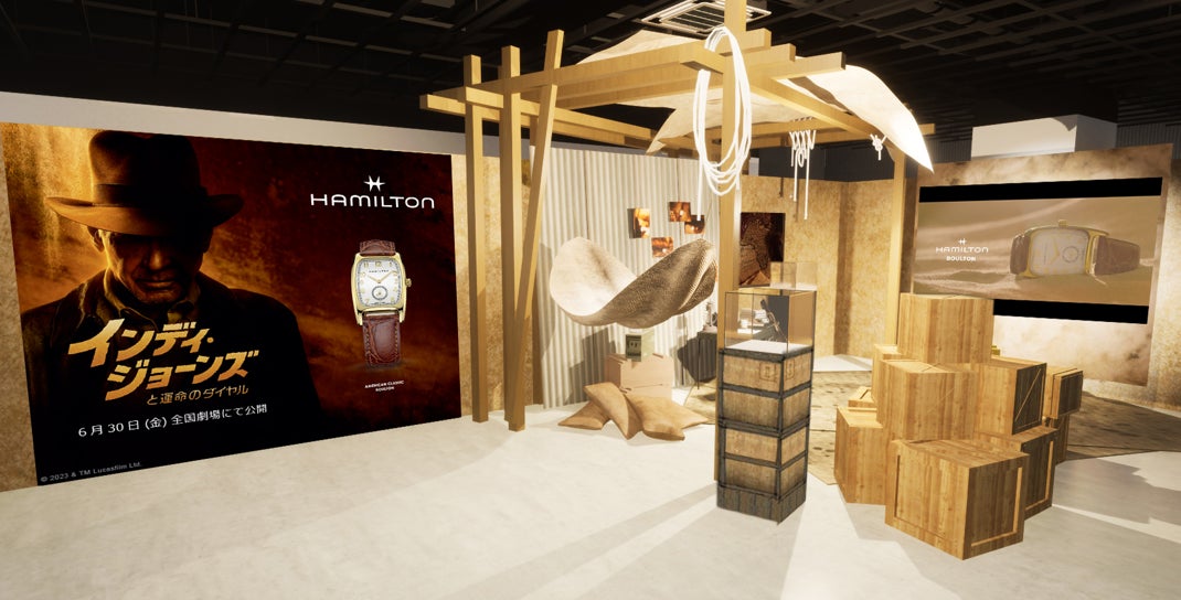 フェドーラ帽、ムチ、そして腕時計。最新作『インディ・ジョーンズと運命のダイヤル』では、インディがハミルトンの「ボルトン」を着け、新しい冒険へと踏み出していきます。映画の世界観を体感できる空間は、どこを切り取っても写真映えするフォトスポットに。また、ハミルトンオフィシャルLINEのお友だち追加でオリジナルグッズをもらえるラッキードロウができたり、会場内にはキーワードが隠されていたりと、参加して楽しめる要素が詰まっています。