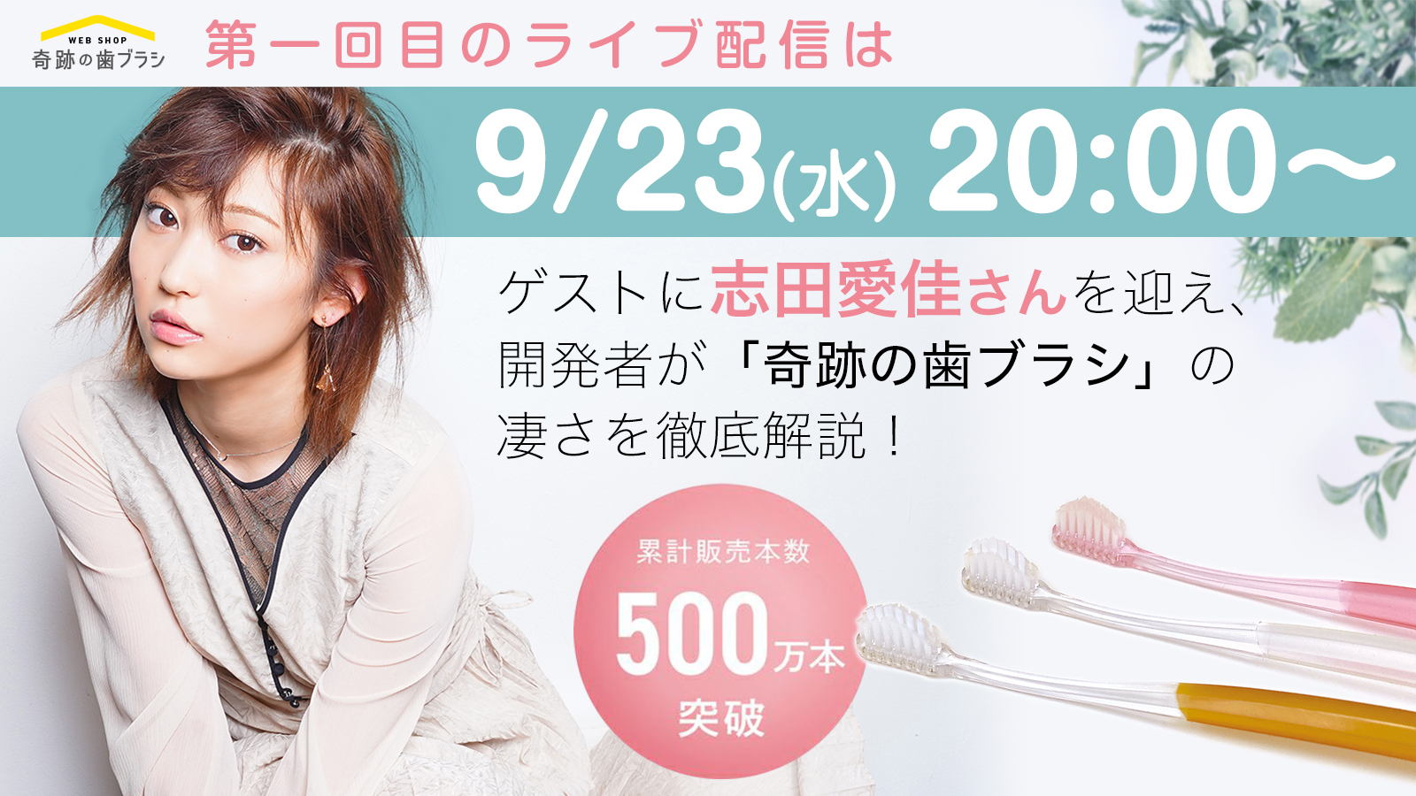 ライブコマースのONPAMALLにて『奇跡の歯ブラシ』の販売を9月23日から開始します。モデルの志田愛佳さんをゲストに迎えたライブ配信や、発売を記念した特別キャンペーンも実施。