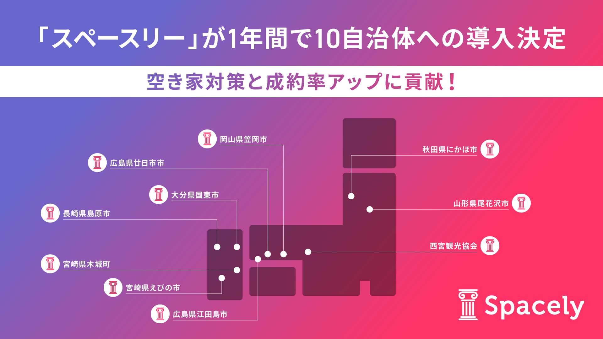 空間データ活用プラットフォーム「スペースリー」が提供開始から1年間で10自治体への導入決定。広島県江田島市や岡山県笠岡市にて、不動産DXで空き家対策と成約率アップに貢献。