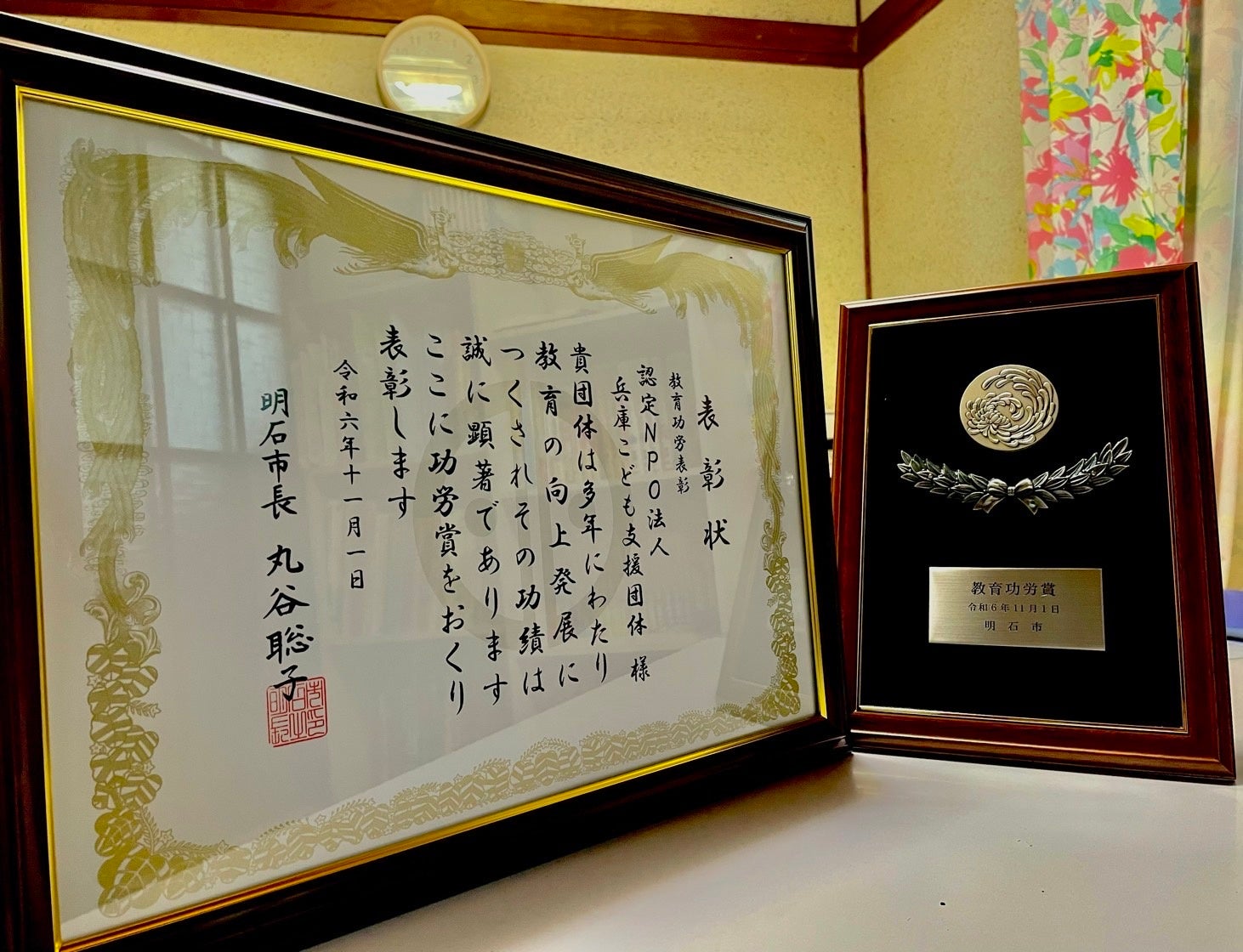 2024年明石市教育功労賞を授与された兵庫県明石市の認定NPO法人、兵庫子ども支援団体が団体設立11周年を11月29日に迎えました。