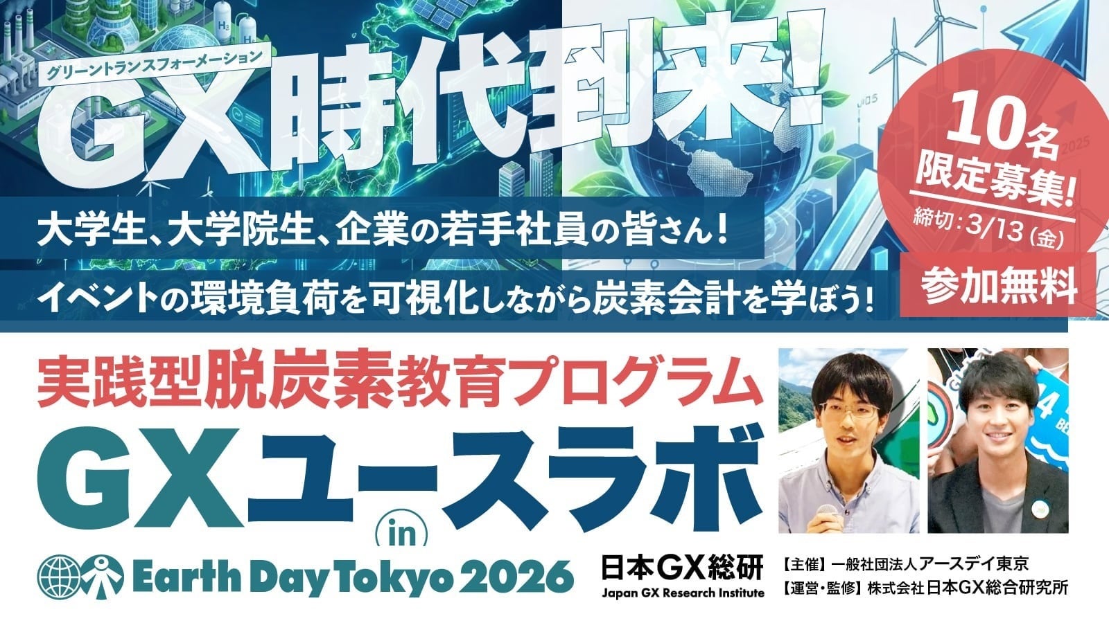 株式会社日本GX総合研究所の協力のもと、企業の若手社員や大学生・大学院生を対象とした実践型脱炭素教育プログラム「GXユースラボ in アースデイ東京2026」を開始します!