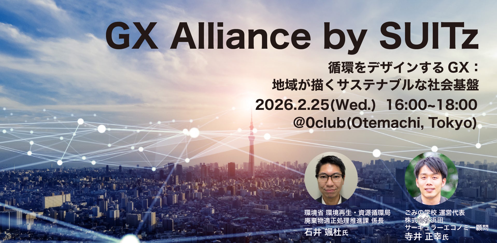 第2回「GX Alliance by SUITz」では、「循環をデザインするGX:地域が描くサステナブルな社会基盤」をテーマに、政策の最前線に立つ環境省、現場から人々の意識を変え続ける「ごみの学校」、そして革新的な技術を持つスタートアップが登壇。