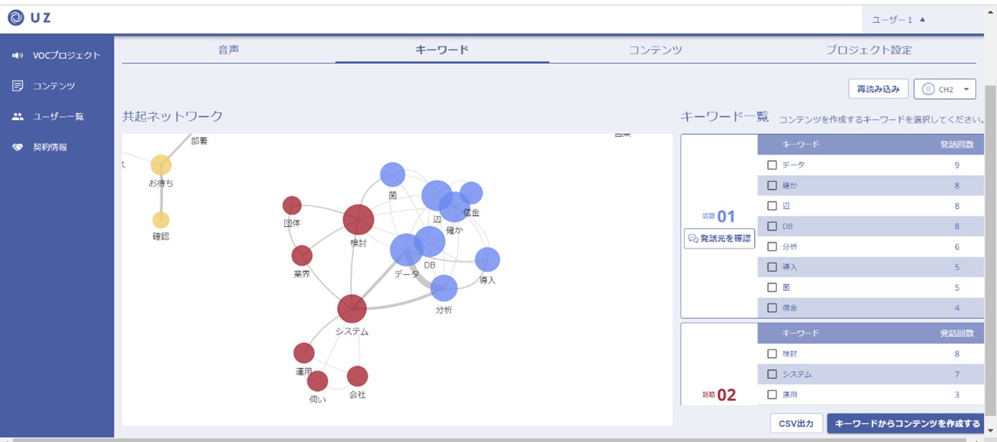 顧客トラブルの要因分析や顧客の興味関心ポイントの可視化が可能です。