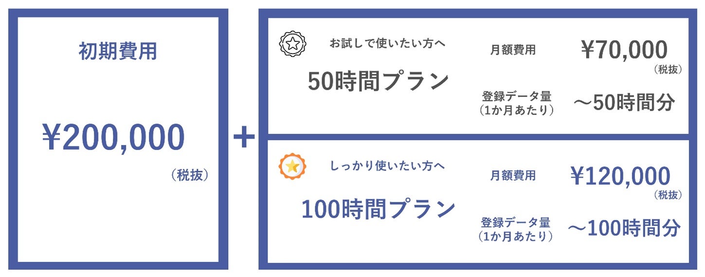 月額費用は「UZ」へアップロードする通話録音データ量(時間)に応じて、以下2つのプランから選択できます。