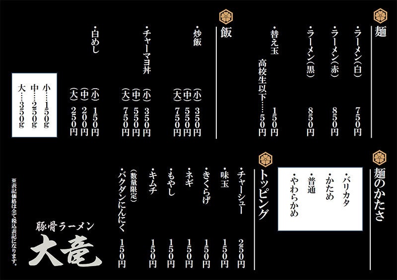 豚骨ラーメン大竜 公式Instagram:https://www.instagram.com/dairyu0403