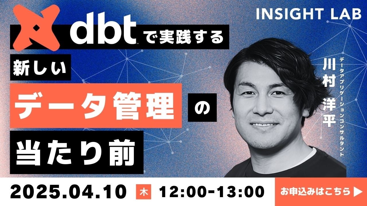 このパートナーシップにより、INSIGHT LABはクラウドベースのソリューションを活用して、効率的かつ柔軟なデータ基盤構築を支援し、企業がデータを活用して迅速な意思決定を行える環境を提供します。これにより、データ管理や分析の効率化、コストの大幅な削減が期待できます。(詳細については、「dbt Labsとの販売パートナー契約締結による、INSIGHT LABの今後の取り組み」をご参照ください。)