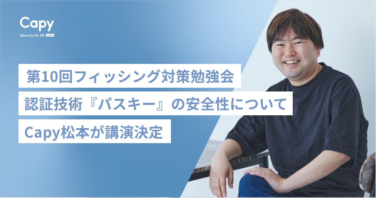 Capy株式会社(本社:東京都千代田区、代表取締役:岡田満雄)は、フィッシング対策協議会が主催する「第10回フィッシング対策勉強会」において、当社の松本が講演を行うことをご報告します。