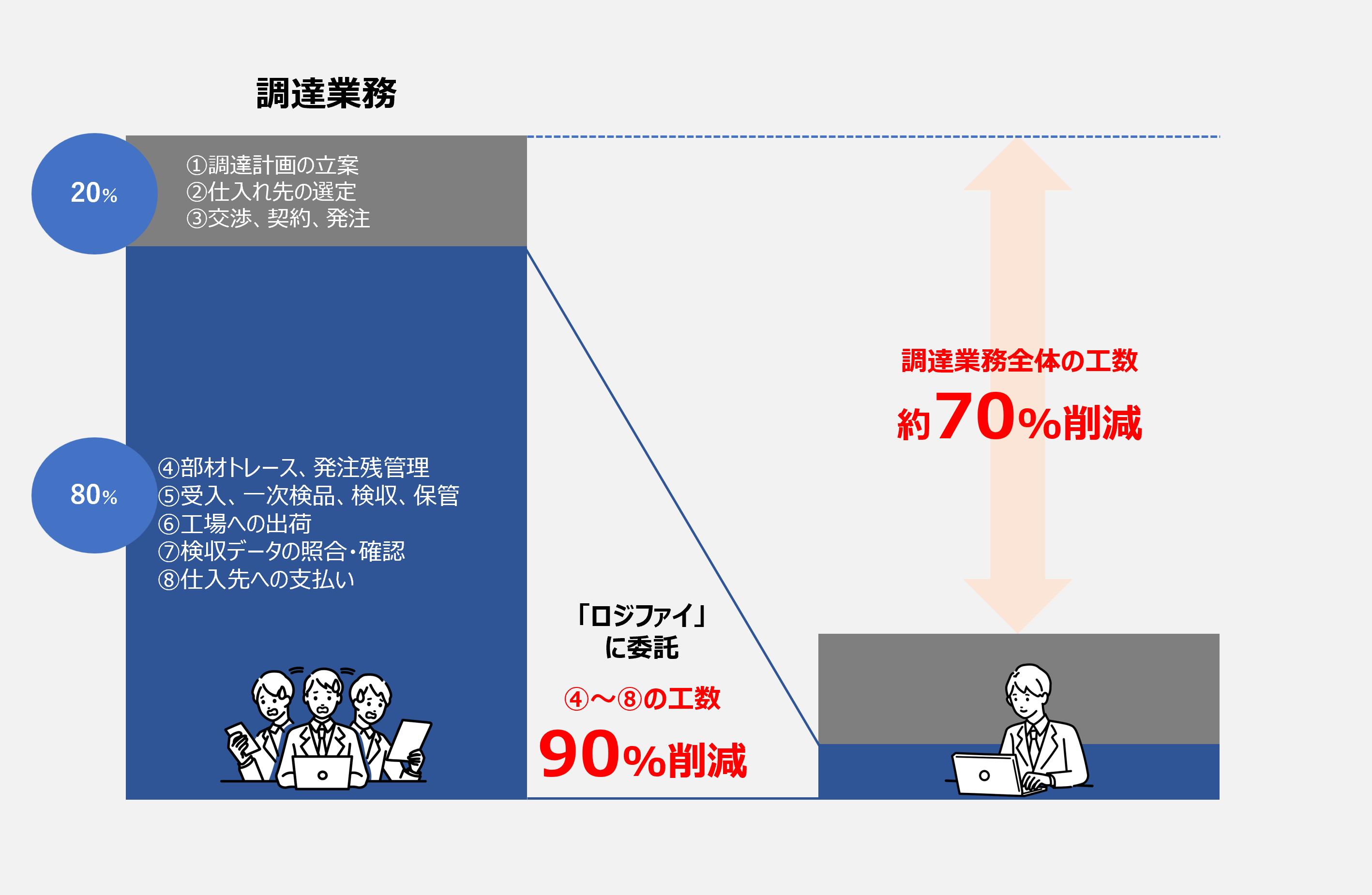 ①調達業務の代行:部品発注業務、物流・在庫の管理