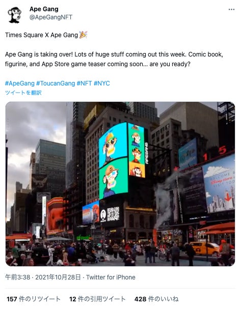 引用:Twitter Ape Gan氏 (https://twitter.com/ApeGangNFT/status/1453430959664160792)