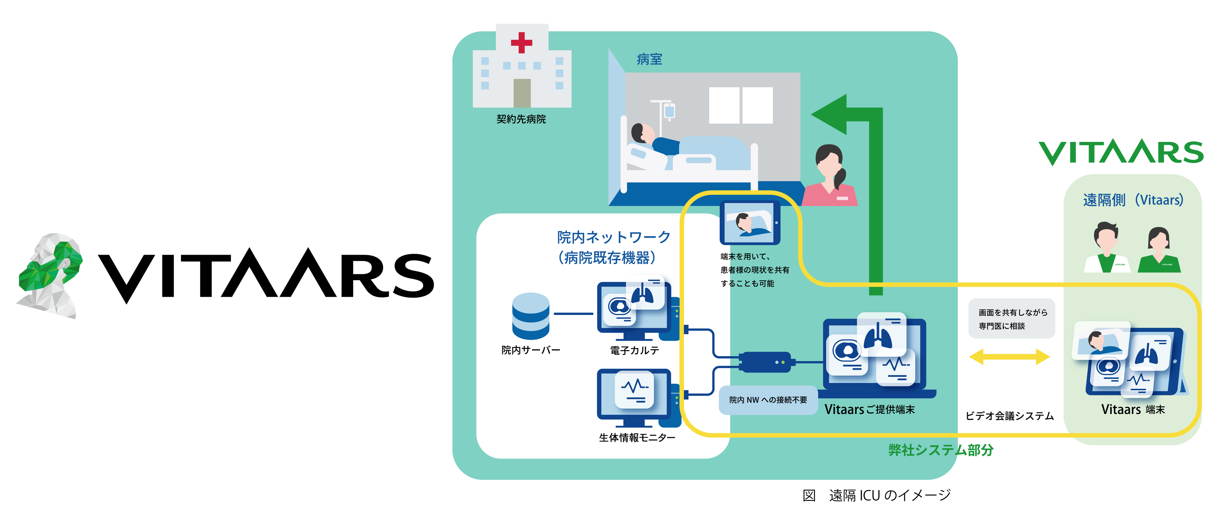 私たちは、2016年のT-ICU(旧社名)創業以来、遠隔ICUによる診療サポートサービスを中心に医療において日本・世界へと幅広く事業を展開する中、2023年3月よりVitaarsに社名を変更致しました。 Vitaarsは、集中治療科医・集中ケア認定看護師のチームを擁する遠隔ICUサポートサービスの提供では日本で唯一の事業会社です。「世界中の人々に、最高の医療をAnywhere, we care.」をミッションに、遠隔による診療支援・医療情報提供サービス・医療安全に関するコンサルティング等、専門知識と経験で医療現場を支え、患者・医療従事者・関わる人々の願いがかなう環境を目指しています。