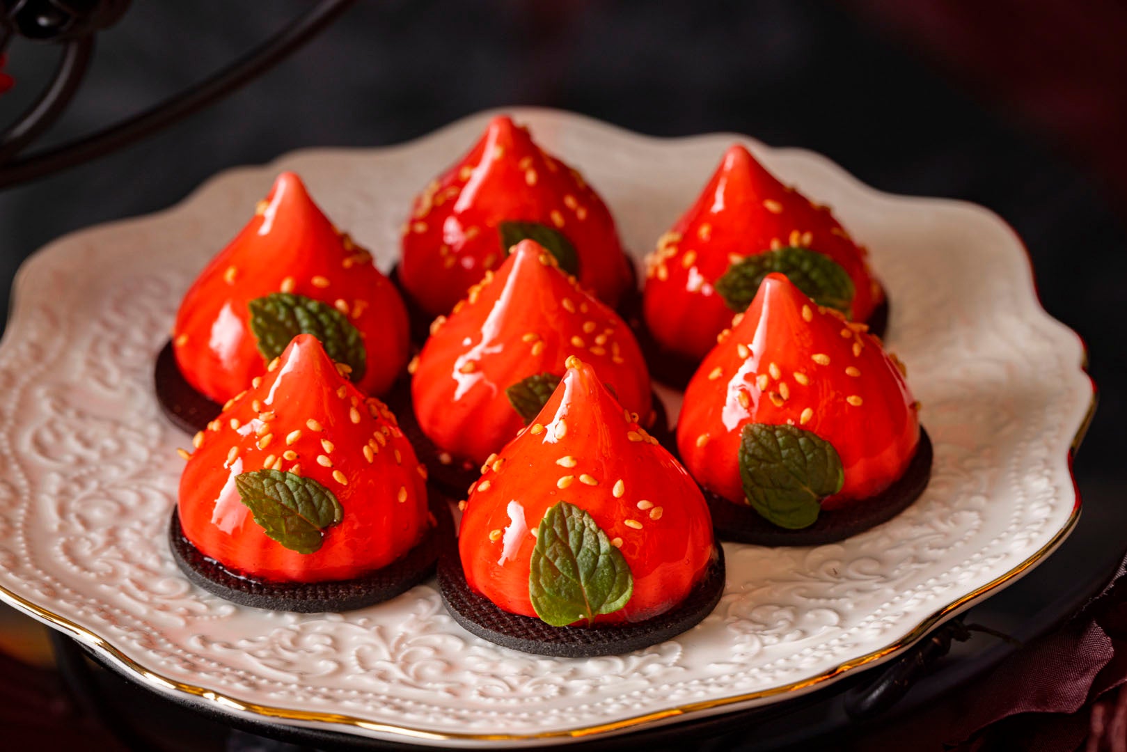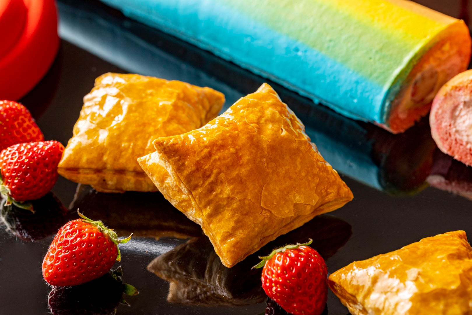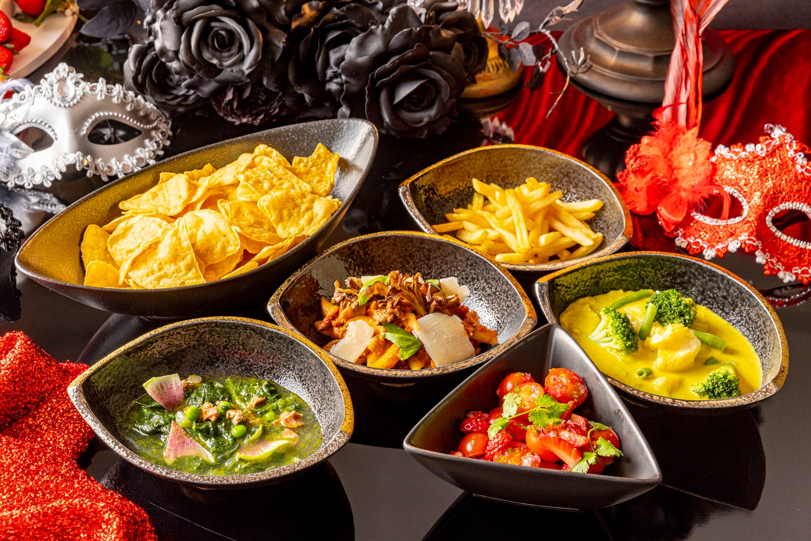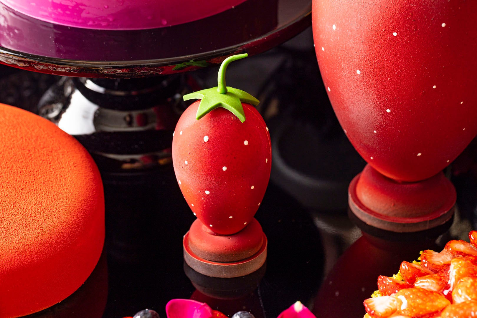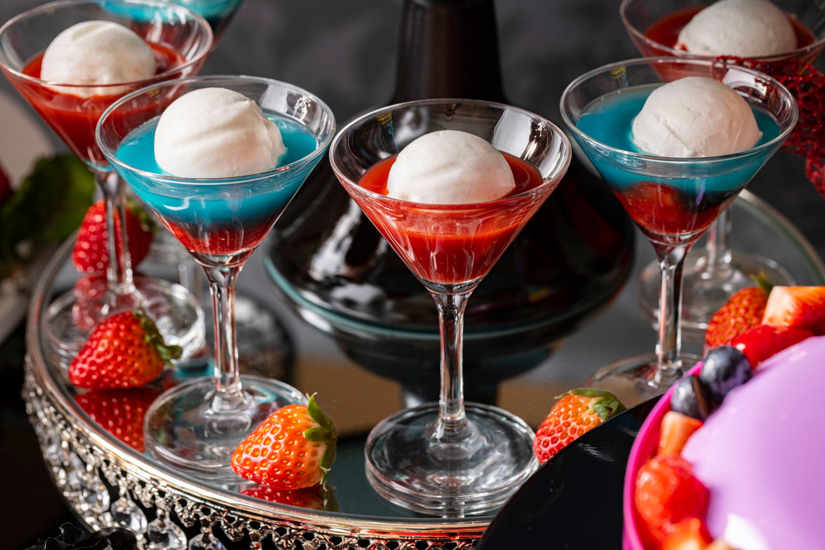 毎年ご好評をいただいている、イチゴのスイーツビュッフェ。“仮面舞踏会”をテーマに繰り広げます。マスクを付けて訪れる舞踏会は、その場にいる誰もが心をオープンにして思いきり楽しむパーティータイム。黒を基調にした仮面舞踏会の会場をイメージし、イチゴの赤色、そしてさまざまな人の個性やアイデンティティの象徴としてカラフルなレインボー色が映える「Strawberry Masquerade」。周りを気にすることなく、自分の思うままにお好きなだけスイーツをお楽しみください。