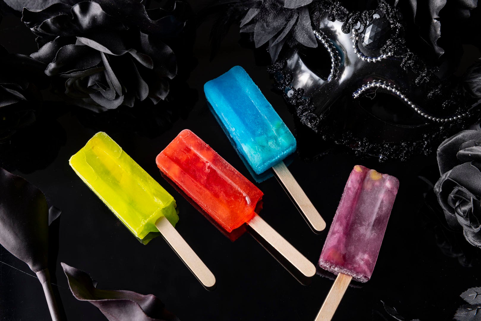 フルーツがたっぷり入ったホテルメイドのアイスキャンディー。メロン、アセロラ、ブルーハワイ、グレープの4種類をご用意。