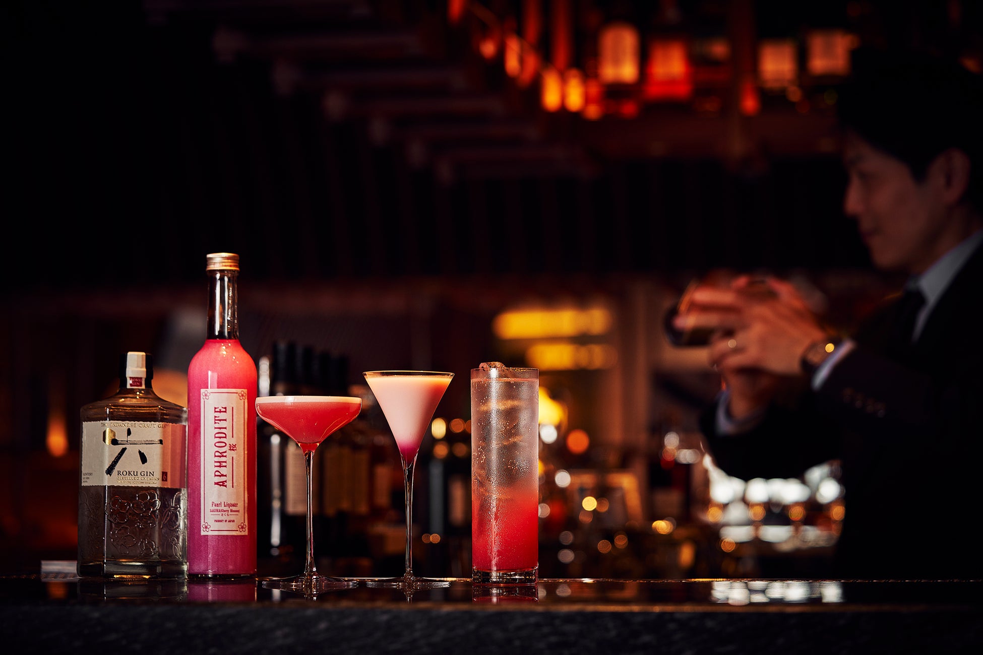 バーの「Den Kyoto」では、桜のほのかな香りと華やかな美しさを堪能いただける、カクテル3点をご用意しました。春の訪れを感じられる桜リキュールなどのフレーバーを駆使し、繊細かつ優雅な味わいに仕上げました。