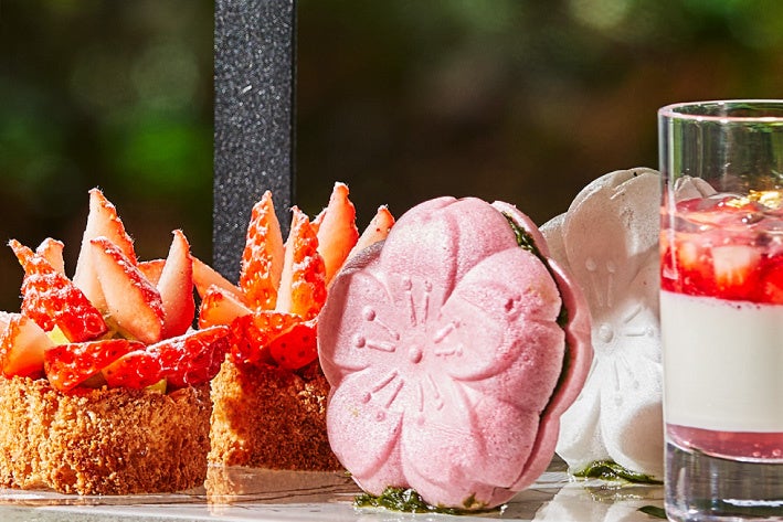 期間限定のアフタヌーンティーは、春の風味の代名詞と云える桜に加え、同じく旬を迎える京都産のいちごをふんだんに使ったメニューで構成いたしました。桜といちご以外にも、春ならではの食材を多用したスイーツとセイボリーアイテムを、繊細かつ豪華なプレゼンテーションでご提供いたします。