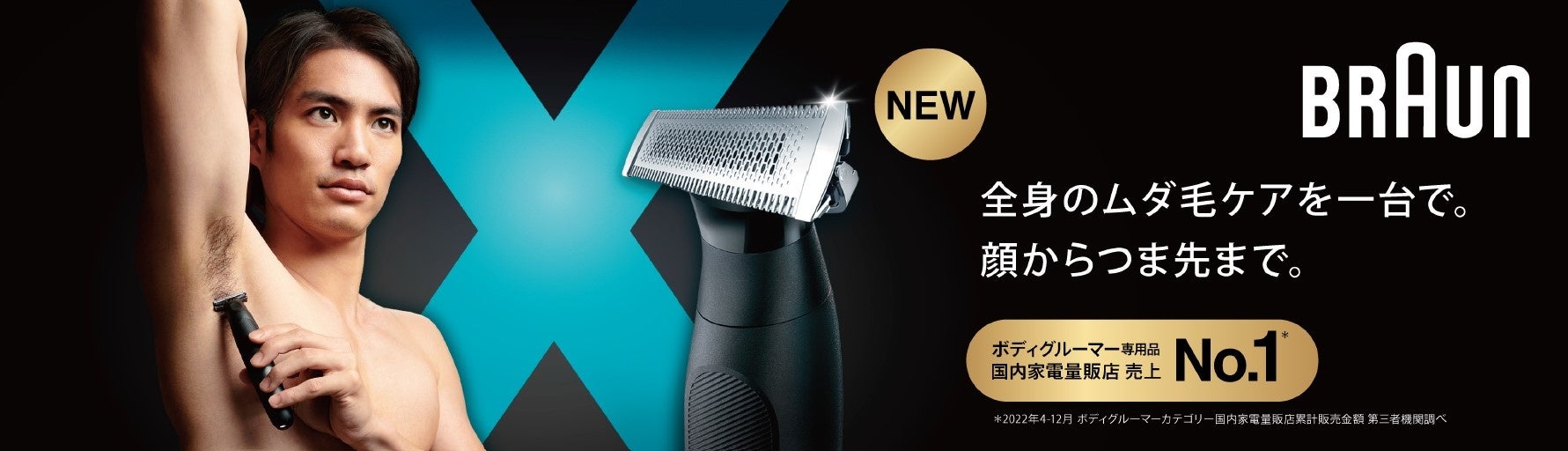 近年、男性によるムダ毛ケアの需要は急速に拡大しており、若年層の男性の2人に1人は体毛をケアする習慣があると言われています。「ボディ&フェイスグルーマー PRO X」を含むブラウンのボディグルーマー製品が発売された2022年4月以来、電動ボディグルーマー市場は家電量販店を中心に2倍以上の拡大を達成し、特に「ボディ&フェイスグルーマー PRO X」は「時短」「肌へのやさしさ」「細かな調整」「防水機能」といったニーズを満たし、個人によって異なる理想のスタイルを実現する製品としてご好評をいただきました。