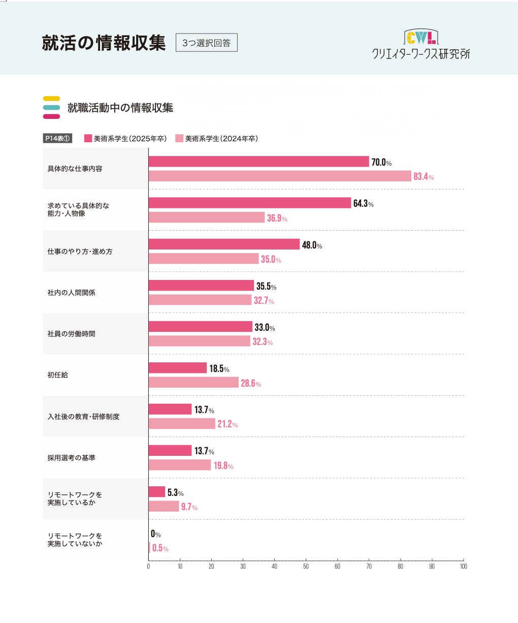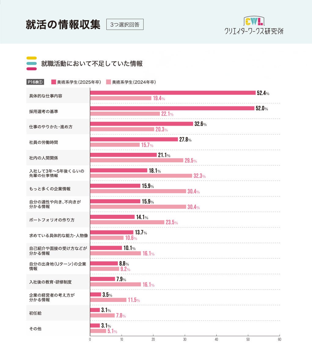 調査速報 第2弾!クリエイターワークス研究所【25年卒美術系学生就活実態調査】美術系学生が不足していた情報は「採用選考の基準」