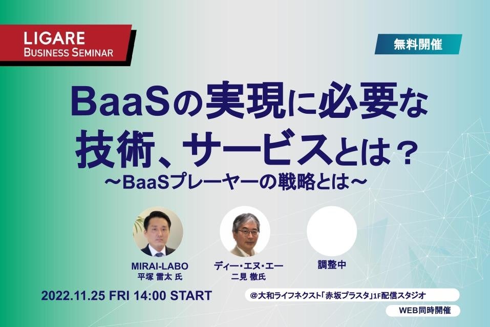 MIRAI-LABO・ディー・エヌ・エーが登壇「BaaSの実現に必要な技術、サービスとは? 〜BaaSプレーヤーの戦略とは〜」11月25日(金)開催