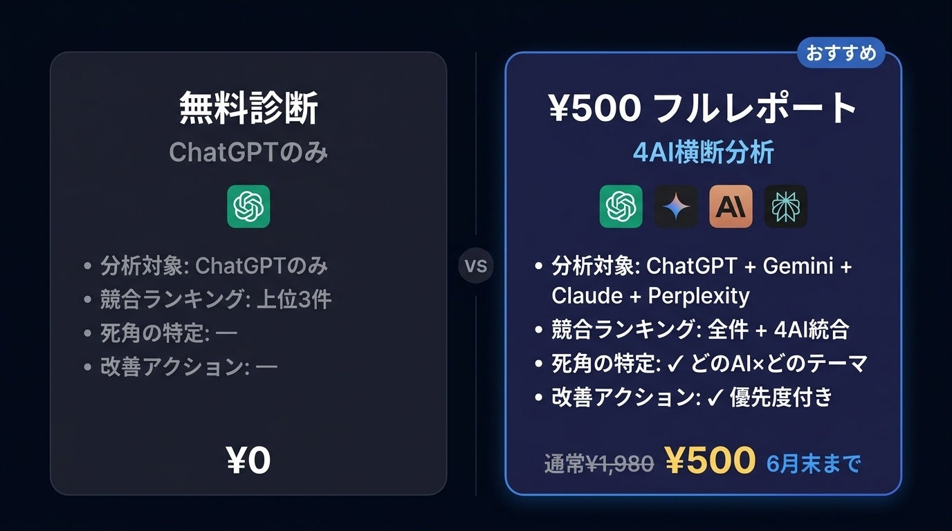 フルレポート:4AI横断診断 通常¥1,980 → キャンペーン¥500(6月末まで)