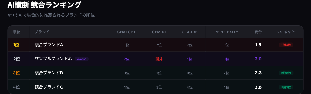 5. 4AI横断 競合ランキング — 同カテゴリの競合をAI統合スコアで順位付け