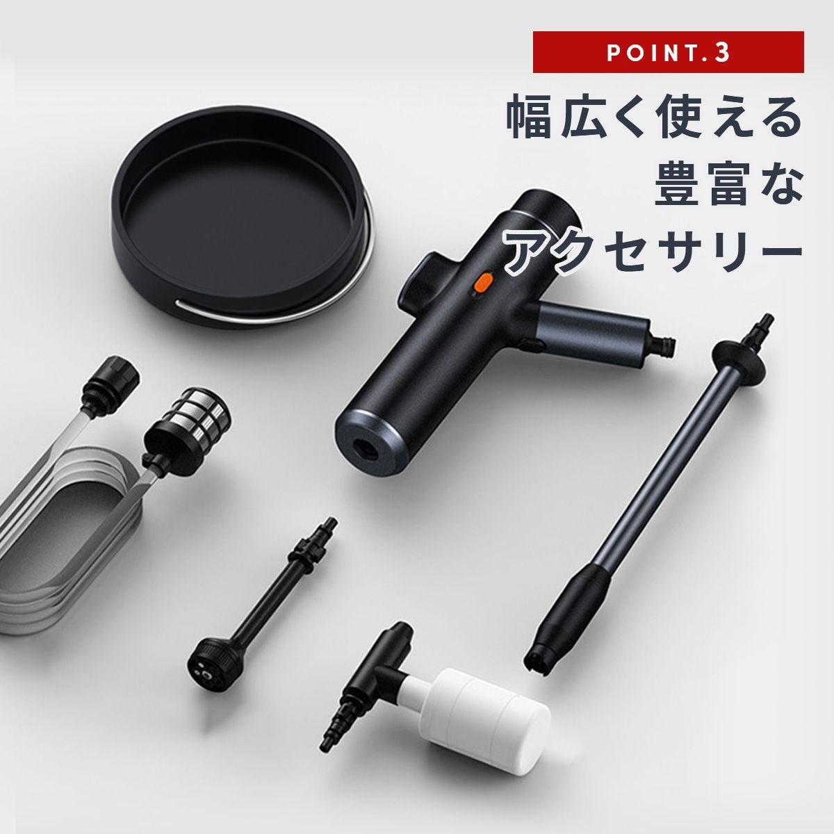 3.豊富なアクセサリー、万能ノズル、折り畳みバケツなどが付属して便利さアップ!