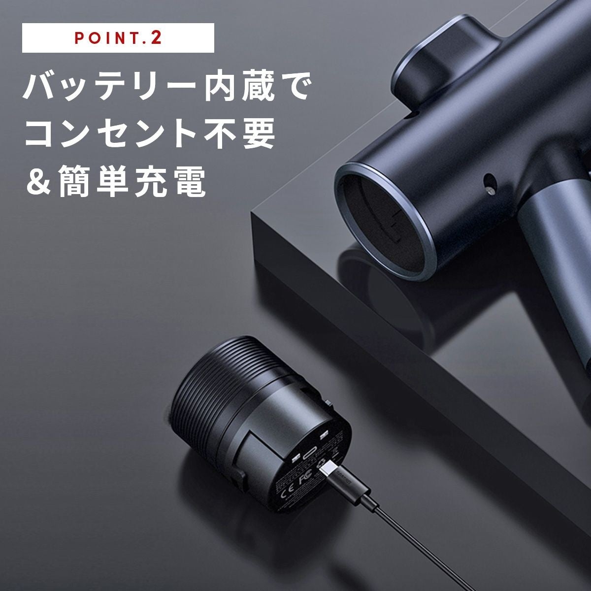 2.充電式&自吸式で電源や水道がない場所でも使用できる!