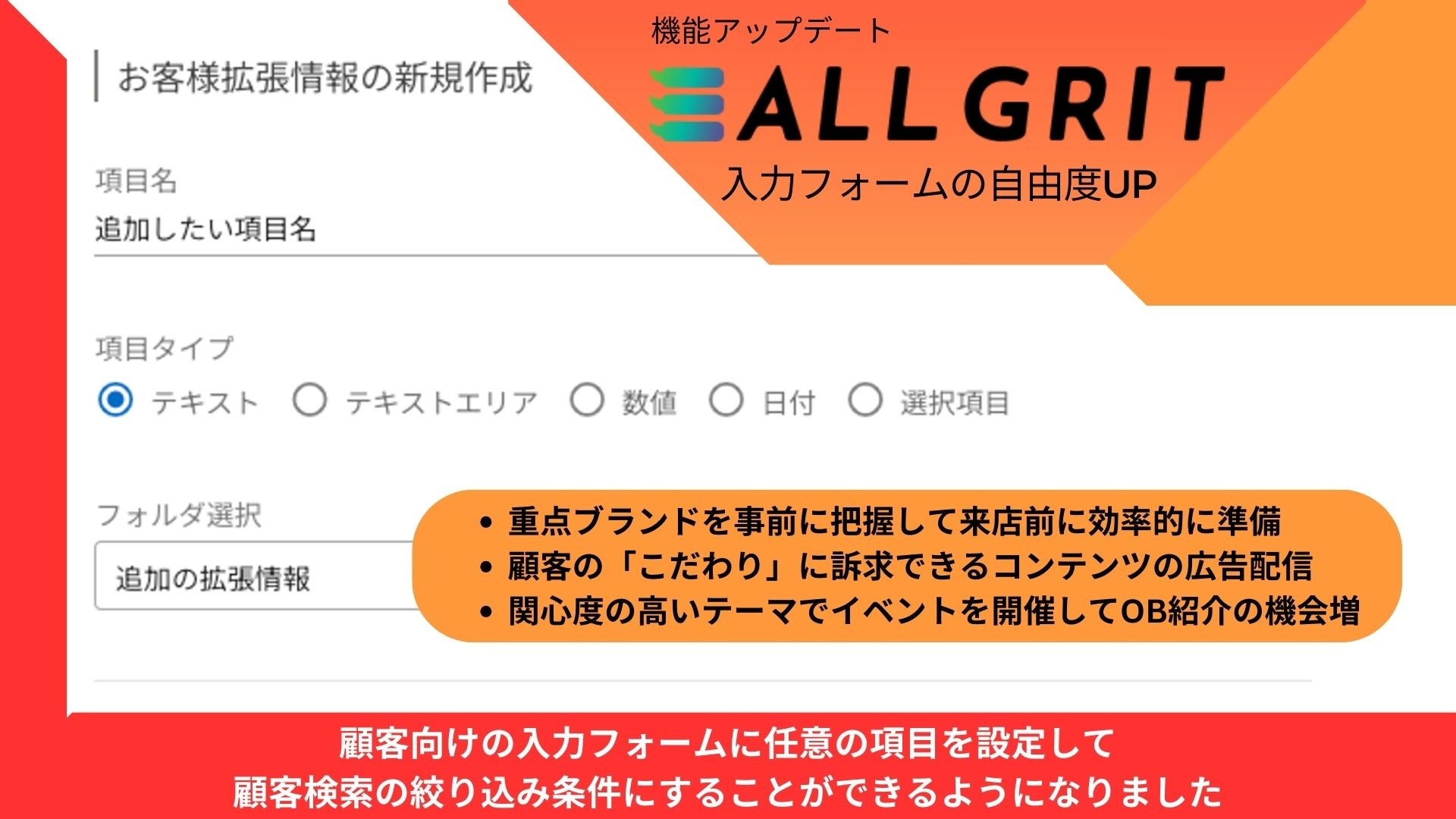 【機能アップデート】お問い合わせフォームで任意項目を設定し、顧客絞り込み条件として活用できるようになりました|住宅・不動産業界向けLINE運用ツール《ALL GRIT》