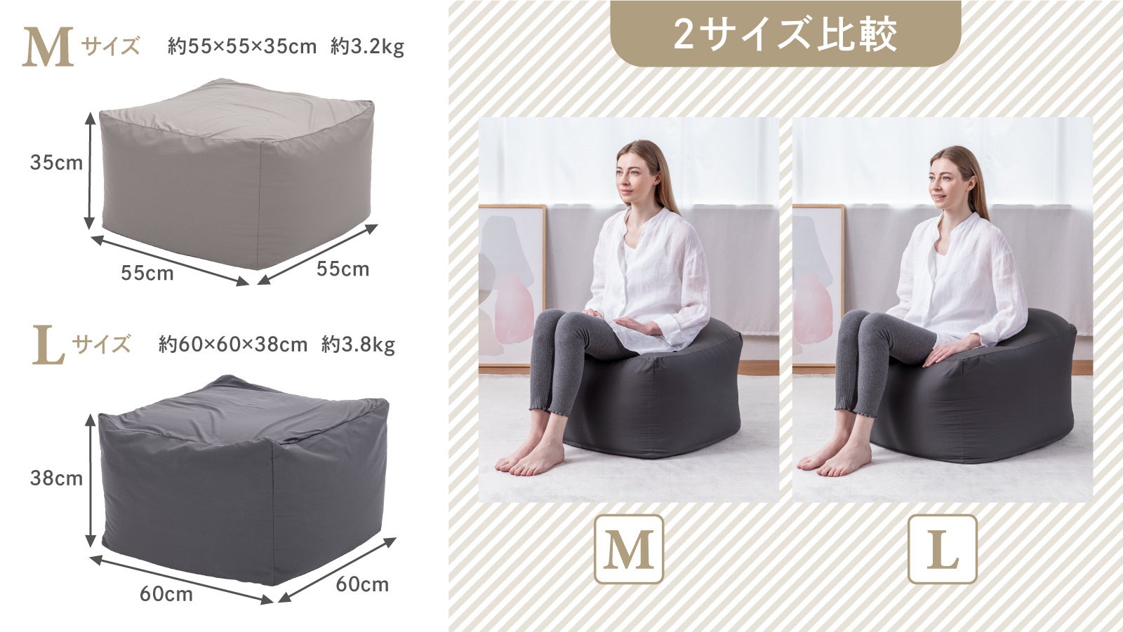 [価格] 【本体】Mサイズ9,980円(税込)/Lサイズ10,980円(税込)【カバー】2,980円(税込)【補充用クッション】2,980円(税込)
