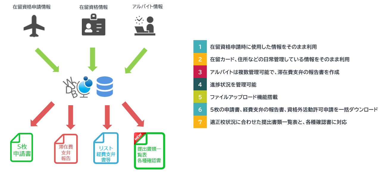 これまでWSDBでは、在留期間更新申請に関して、入国前の在留資格申請時の情報と入国後の各種データを組み合わせることで、簡単に書類を作成することが可能でした。