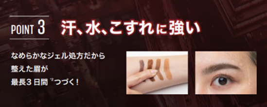 眉をブリーチしたかのようなカラーリング*¹ を実現し、あらゆる髪色に合う、ひと塗りでスッとなじむアッシュも入った4色展開。ブロウジェルのようなスタイリングと固定力で自在に根元から立ち上げて、朝決めたスタイルがくずれにくく、下がりがちな毛流れも整えたままロックしてキープ。これからの季節も安心の、汗、水、こすれに強いなめらかなジェル処方で整えた眉が最長3日間*²続きます。