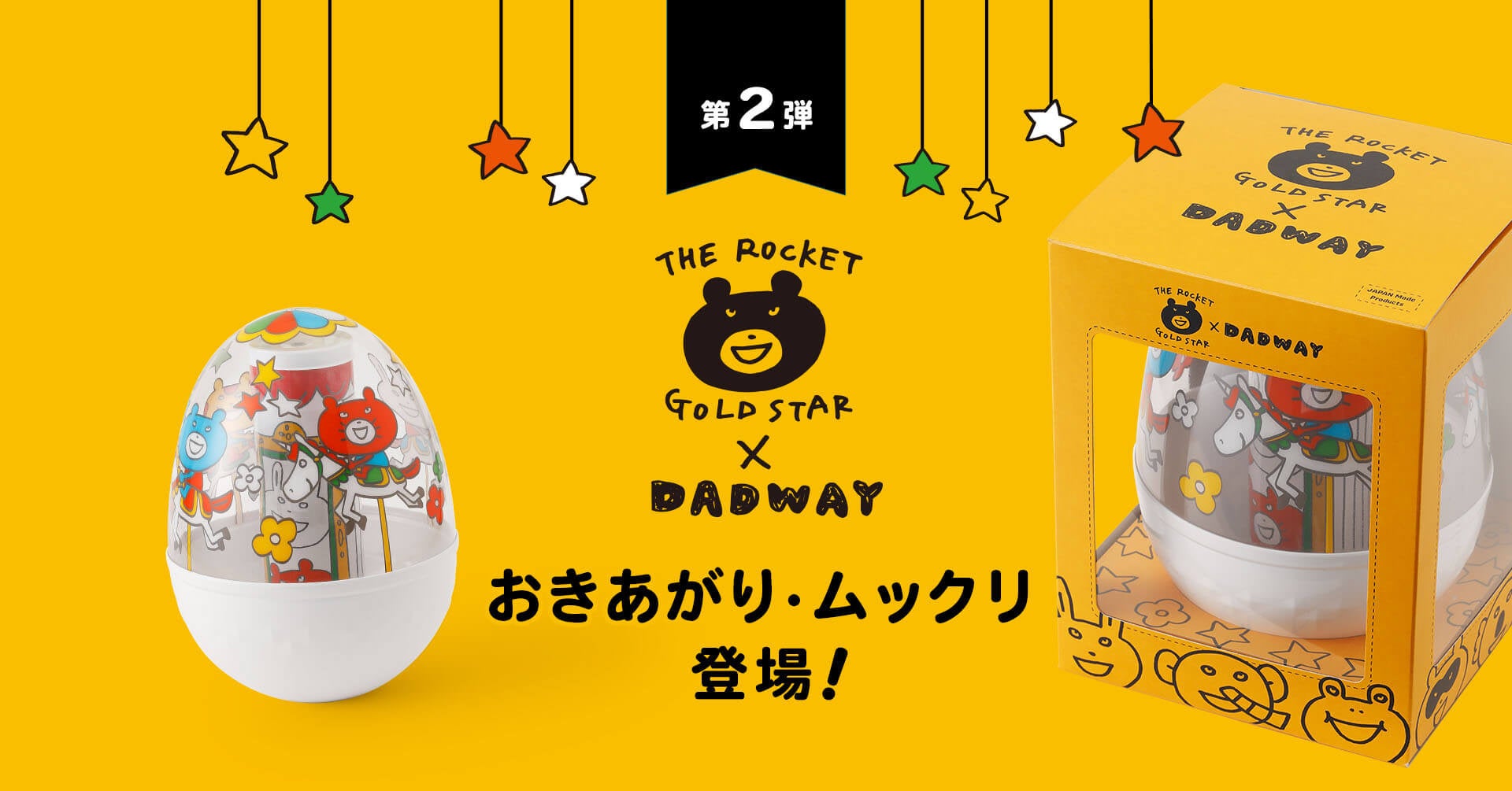 株式会社ダッドウェイ(本社:神奈川県横浜市、代表取締役社長:大野 浩人)は、イラストレーターTHE ROCKET GOLD STAR (ザ・ロケット・ゴールド・スター)のコラボレーション第二弾として、「おきあがり・ムックリ/エンジョイ!メリーゴーランド/マルチ」を11月より全国のDADWAY店舗とオンラインストア限定で発売します。