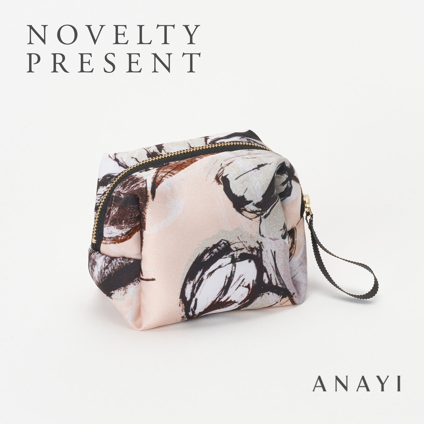 期間中、パスワードを再設定いただき、さらに商品をご購入いただいたお客様に先着順で「ANAYI オリジナルポーチ」のノベルティをプレゼントいたします。マチをたっぷりとった大容量のポーチです。