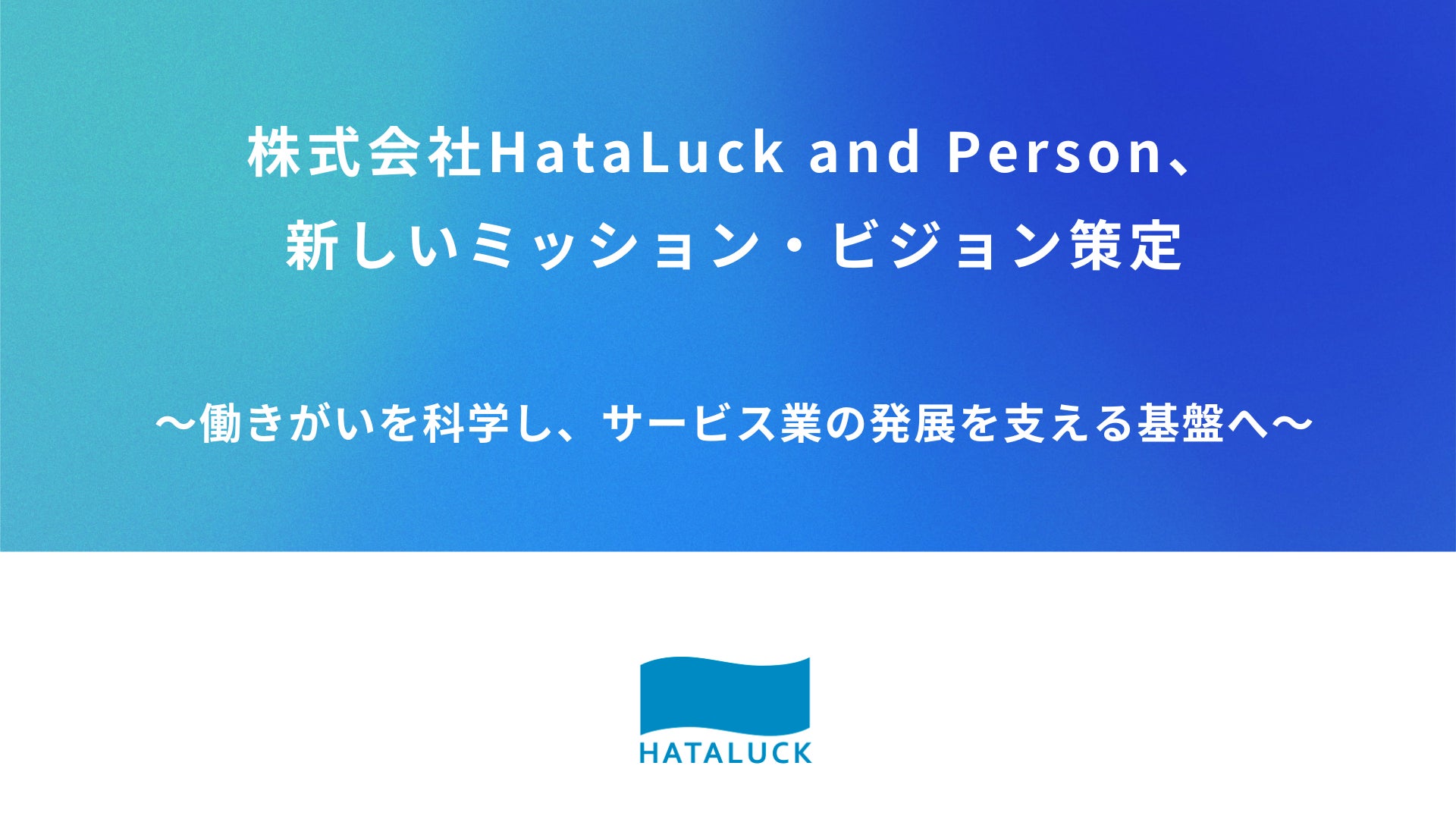 株式会社HataLuck and Person(以下、HATALUCK)は、サービス業のエンゲージメント経営を推進するために、2025年2月より新しいミッション「人々のこころが満たされる社会を実現する」と新しいビジョン「『はたらきがい』を科学して、サービス業ではたらく人々を輝かせる社会システムをつくる」を策定しました。