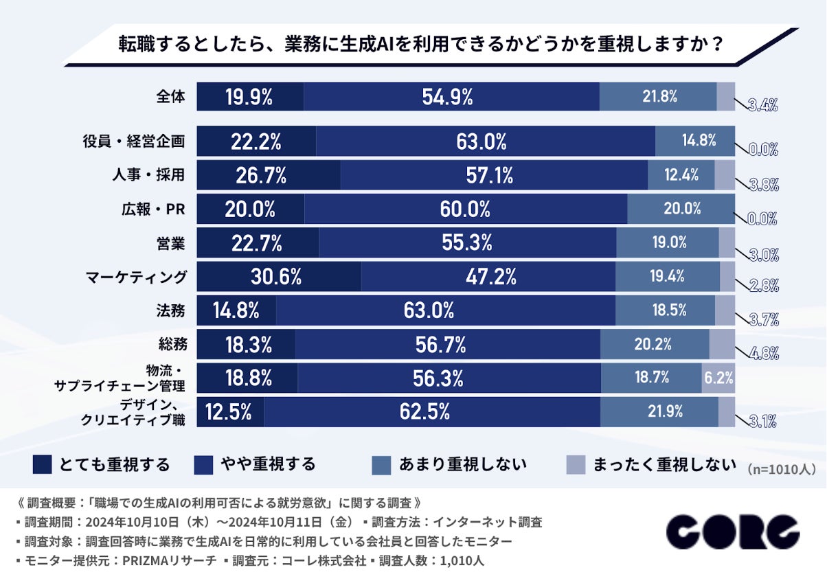 さらに、転職の際に業務での生成AIを重視する人が大多数を占め始めています。