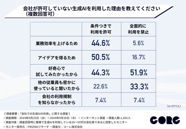 コーレでは、さまざまな企業の生成AI利用に関する独自調査してきました。