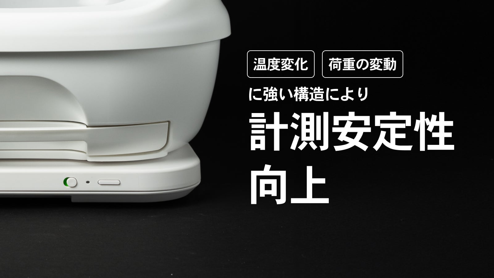 内部機構の設計を見直し、常に重たい荷重がかかっている時に起こりうる、計測への悪影響などが軽減されました。ご家庭内の温度変化や荷重の変動に対してより強い構造になり、さらに安定的な継続稼働ができるようになりました。