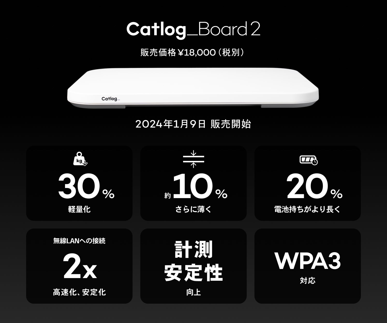 猫様の排泄トラブルや異常な体重変化をAIが検知する『Catlog Board』の第2世代が新登場!薄型化&軽量化、電池寿命20%向上、WPA3対応でさらにパワーアップ💪