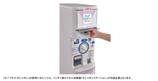 本商品は、2022 年 2 月より本格展開がスタートしたカプセル自販機初の平面商材が払い出されるマシン 「フラットガシャポン」専用商品となります。