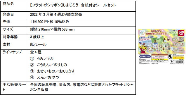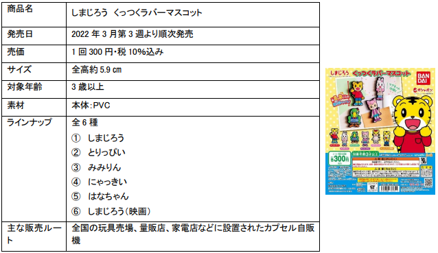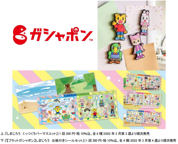 『しまじろう くっつくラバーマスコット』『【フラットガシャポン】しまじろう 台紙付きシールセット』3 月第 3 週より順次、全国のカプセル自販機・フラットガシャポン自販機にて発売