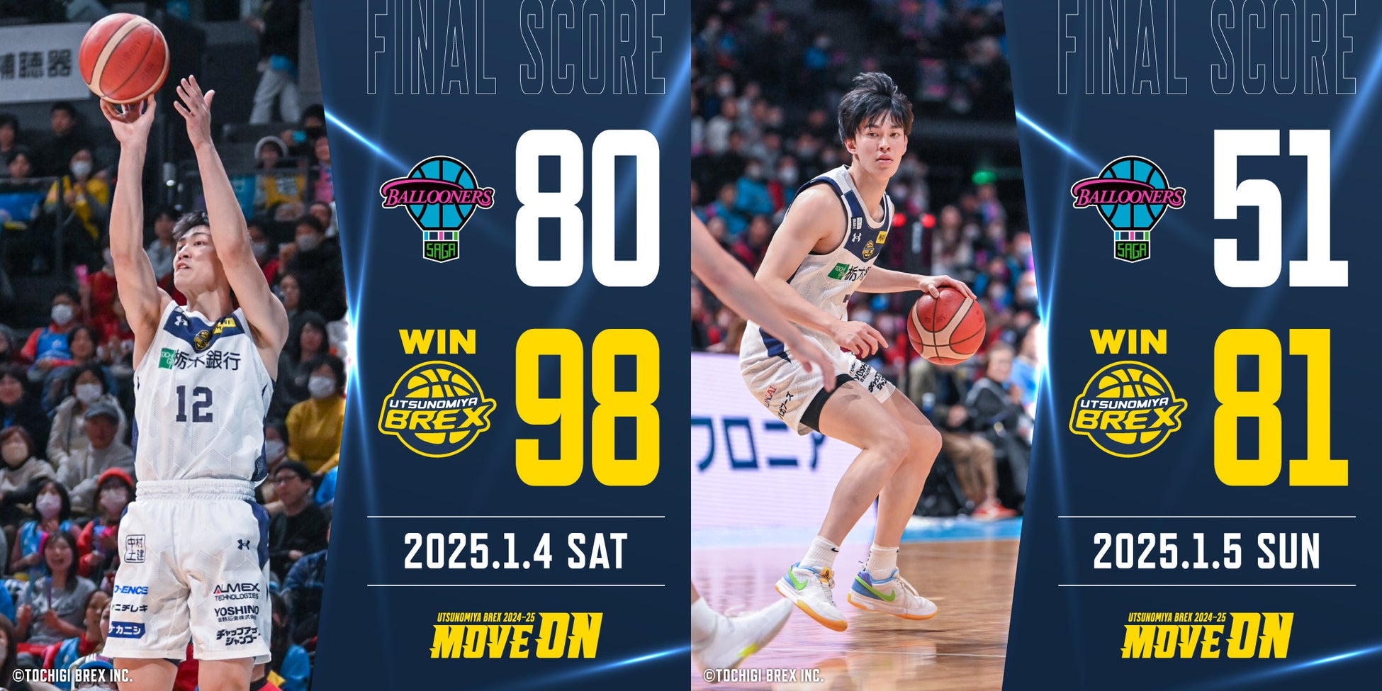 宇都宮ブレックスは、2025年1月4日(土)と1月5日(日)にSAGAアリーナで佐賀バルーナーズと対戦しました。