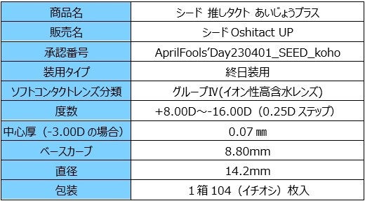 【エイプリルフール企画】 推しがどこにいても見つけられる!“推し活用”コンタクトレンズ「シード 推しタクト あいじょうプラス」 2023年4月1日(土)新発売