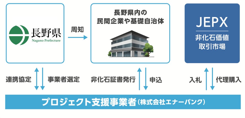 株式会社エナーバンク(共同創業者 代表取締役:村中 健⼀、本社:東京都中央区)は、長野県が公募型プロポーザル方式により募集した「共同調達による再生可能エネルギー利用促進事業に係る事業者募集」において、支援事業者として選定されました。環境価値取引サービス「グリーンチケット」のデジタルソリューションと共同購入のノウハウを活用し、長野県内の事業者(各種法人・個人事業主)が費用の低減や事務負担の軽減等をしながらの非化石証書の調達を支援するプロジェクトを開始します。