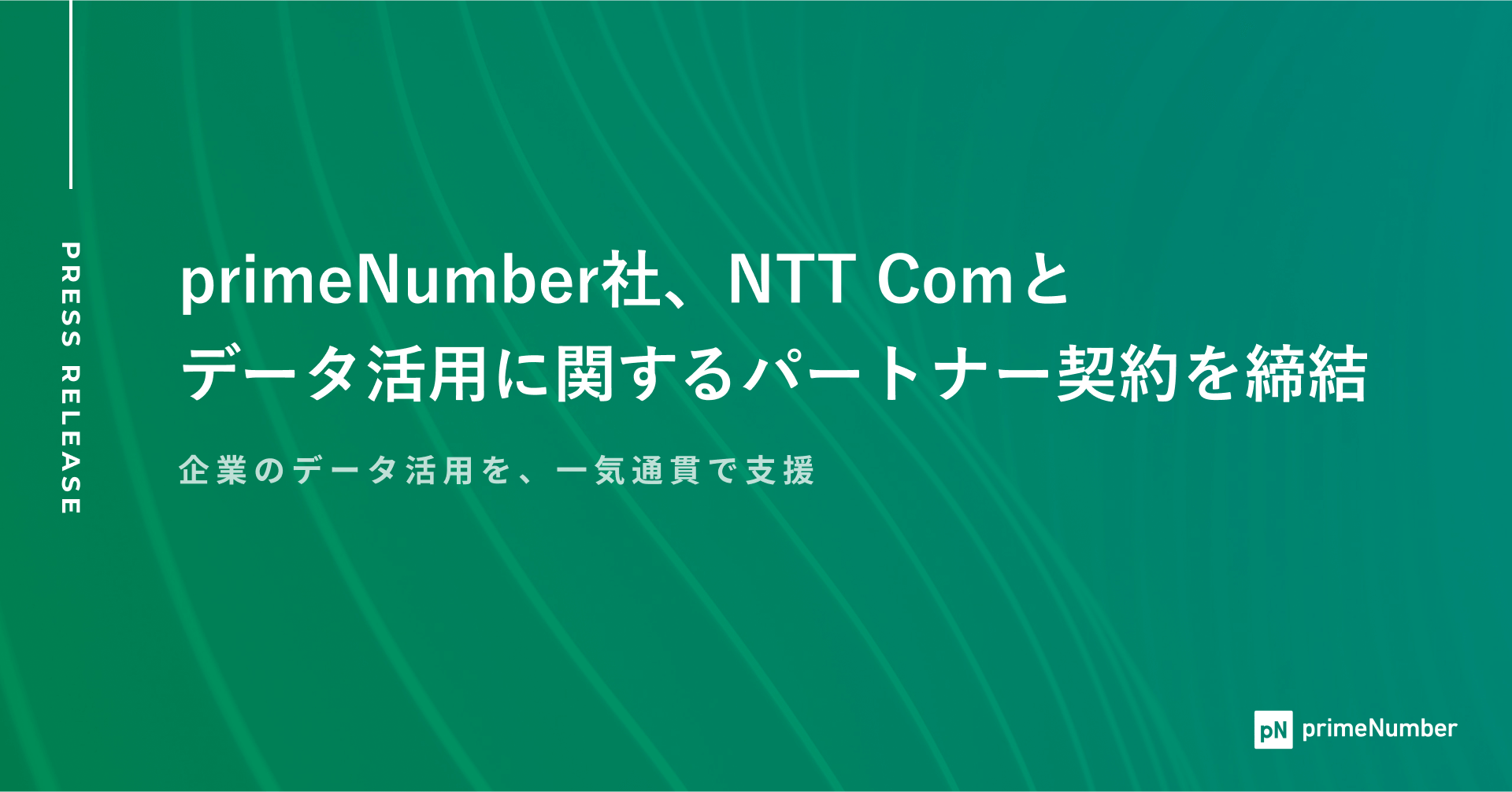 株式会社primeNumber(本社:東京都品川区、代表取締役CEO 田邊 雄樹)は、NTTコミュニケーションズ株式会社(本社:東京都千代田区、代表取締役社長:丸岡 亨、以下 NTT Com)とデータ活用に関するパートナー契約を締結しました。